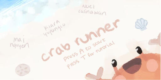 Crab Runner is an endless runner game about a crab raving on the beach.This project was my first experience working with a game design team, and our first experience working together. We were all students and we felt like we were all responsible enough to allow ourselves to come up with our own deadlines and communicate when necessary. My team had no members who specialized in programming so I took on the role as the main programmer. I also found myself planning when the team would generally meet and ended up making a majority of the final decisions.Check out the game here.